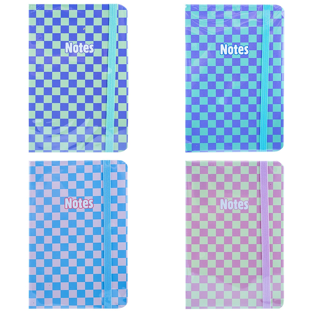 - Carnetelul pentru notite are coperta cartonata, cu imprimeu in carouri.