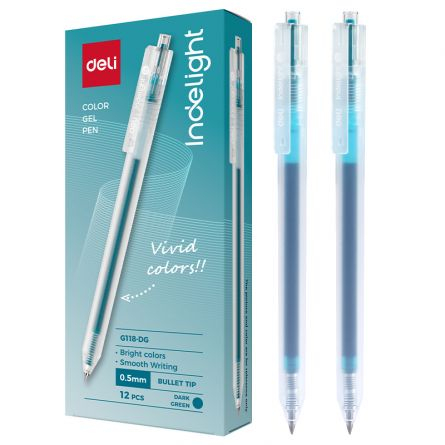 Pix cu mecanism Deli cu varf metalic de 0.5mm pentru o scriere fluida cu cerneala de tip gel, ideala pentru linii curate si precise.