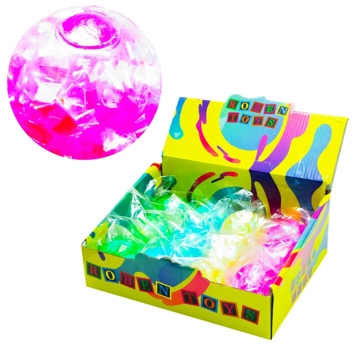 - Realizate din material cauciucat moale si lipicios, aceste mingi ascund in interior lichid transparent cu confetti stralucitoare cu reflexii multicolore, care plutesc spectaculos la fiecare miscare. Designul lor atragator si culorile vii transforma joaca intr-o experienta plina de energie si buna dispozitie.